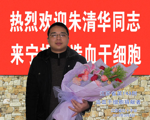 2009年5月15日,朱清華在濱海縣紅十字會報(bào)名登記,5月18日采集血樣送江蘇省人民醫(yī)院HLA實(shí)驗(yàn)室,成為捐獻(xiàn)造血干細(xì)胞志愿者。當(dāng)年12月10日,他接到濱??h紅會通知,稱其血樣與北京一名患者初配成功。12月12日,縣紅會工作人員征求朱清華的意見,他欣然同意作高分辨檢測,并在中國造血干細(xì)胞捐獻(xiàn)者資料庫江蘇分庫供者再動員通知書上簽了字。12月16日,他在濱??h人民醫(yī)院采集6毫升血樣標(biāo)本寄至北京市血液檢測中心作高分辨檢測。