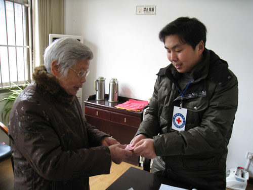 愛心市民陸書林老奶奶向青海玉樹地震災(zāi)區(qū)捐款