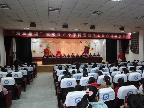2011年11月30日,響水縣紅十字會在縣實驗小學舉行了“海瀾集團”紅十字博愛助學金愛心捐贈儀式。