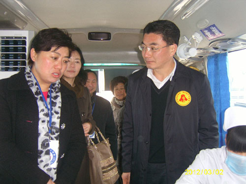 圖為射陽縣委常委、宣傳部部長周嵐,在縣紅十字會常務副會長路紅升陪同下看望無償獻血志愿者